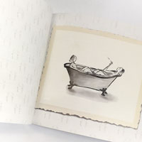 When we were looking for a visual language for this book, Carrie suggested bringing in her cousin, Lauren Patterson, an illustrator also native to Alabama. Lauren's illustrations helped us evoke the dreamlike world of the poems, in which two women weave into and out of each other's consciousness. One of the women was often depicted as faceless, leaving space for us to imagine ourselves as the speaker, or even as Tallulah, or as various interpretations of either character, which reflected the evolving ambiguities of identity and influence that were navigated in the poems. The illustrations also featured objects that appear in the text. The concept we developed around these images was the scrapbook of a relationship that takes place outside time, across generations, in a hypothetical landscape. We framed the illustrations in the ragged edges of old prints, as though they might be photographs taken within the imagination. Our goal was to bring the reader into a space where reality was in question, where a drawing and a photograph were indistinguishable, where the 30s and the 90s might both be happening at once. We laid out the images over a wallpaper background in which the repeating pattern is an echo of the cover illustration, which shows Tallulah and the faceless woman joined in an eternal dance.