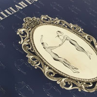 For the cover, we framed this image in a pendant, which we embossed to give a dimensionality to the book's surface, On the back cover, we also embossed a broken string of pearls, which are referenced in the text. Our hope with the design was to convey that while much of what we experience as influence, or fantasy, takes place only in the mind, what does come to exist in the physical world is the lingering effect that our icons have on how we live our lives, and our continuing need to break free from pre-molded identities in order to become.