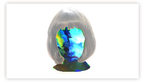 This helped inspire the concept of erasing Lesteria's face and replacing it with green screen, which we then filled with star-scapes, morphing shapes, and blank void. Then we gradually inverted the principle so that Lesteria's face was interchangeably a vessel for the increasing vastness of space and a character (or characters) within it. Finally, the face and the space disintegrate into each other, as the text arrives at the question of whether the artist's conceptions of positive and negative space have really been in unity all along.